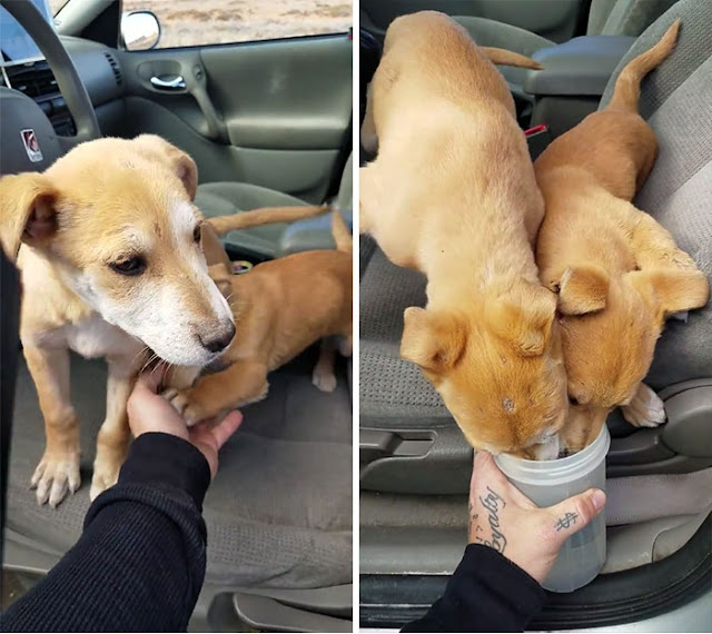 “So my brother and I are on our way down to Phoenix Arizona from Colorado, when in the middle of nowhere we see these two small puppies running on the side of the highway literally in the middle of nowhere. They probably haven’t eaten or drink water and who knows how many days. So it looks like me and my brother got two new dogs!” said Briggs LocHaven