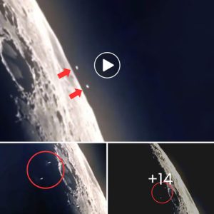 In grainy but clear footage allegedly captured by a deep-space telescope, a dark, unidentified spacecraft is seen hovering just above the Moon’s surface. Moments later, it appears to drop several strange, metallic-looking objects before vanishing into the shadows of the lunar terrain.