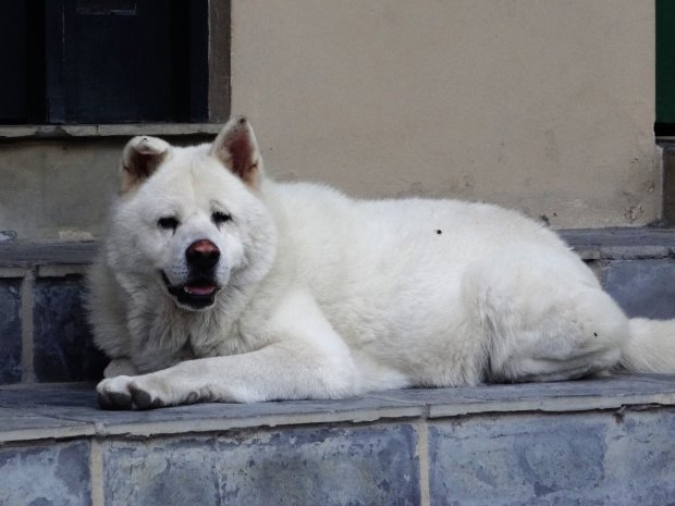 ‘Every morning I get up early and give him his food, then I open the gate and let him out and off he goes. Since he started his daily journeys on his own, Thor has got better and he isn’t as sad as before. ‘His walk takes him all morning and then he returns at noon to eat. He rests a little as he is now quite an old dog and then goes out for a stroll again.’