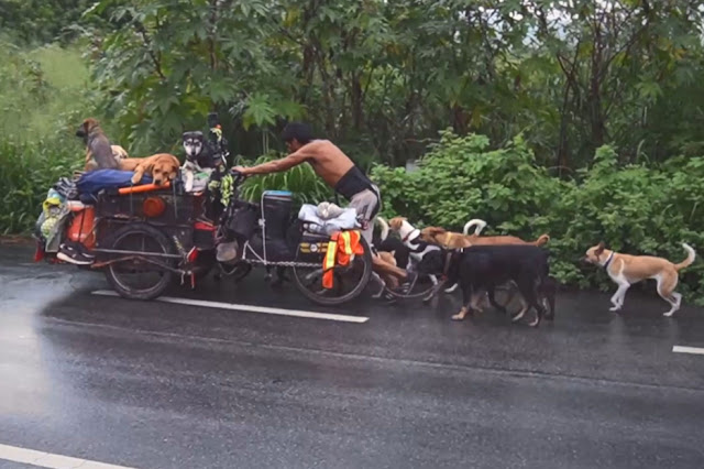 Edgardo Perros is walking the entire perimeter of Mexico while pushing a trolley with dogs and helps those in need along the way. “No one helps dogs living homeless on the roads. This is where I saw their pain,” said 49-year-old Edgardo