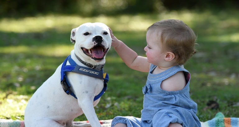 When her mother, Brooke Hodgson, saw the one-year-old Staffy Boston Terrier Cross named Snowy, she knew instantly the hound pound would be the perfect companion for her one-year-old daughter.