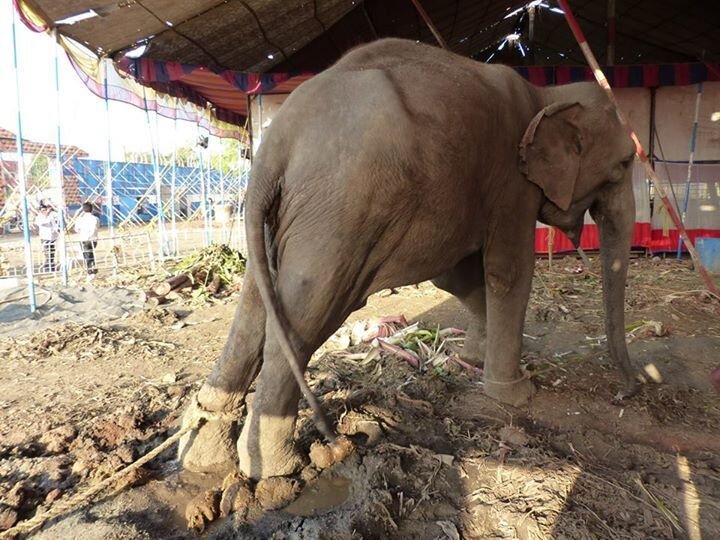 According to the group, the elephants were subject to extreme abuse. The elephants’ front and back legs were restrained by their owner when they weren’t performing. Furthermore, the groups says they were left standing in their own urine and excrement.