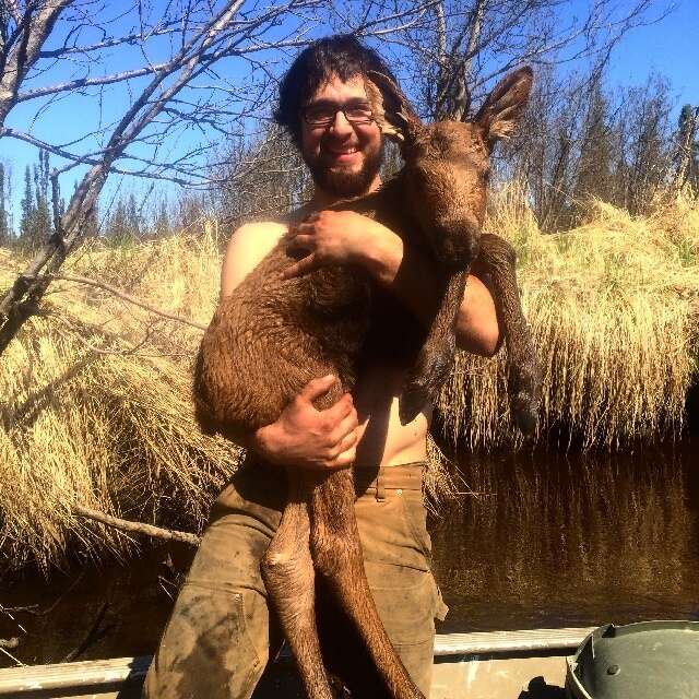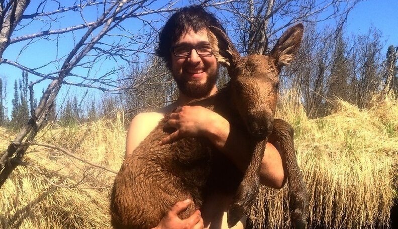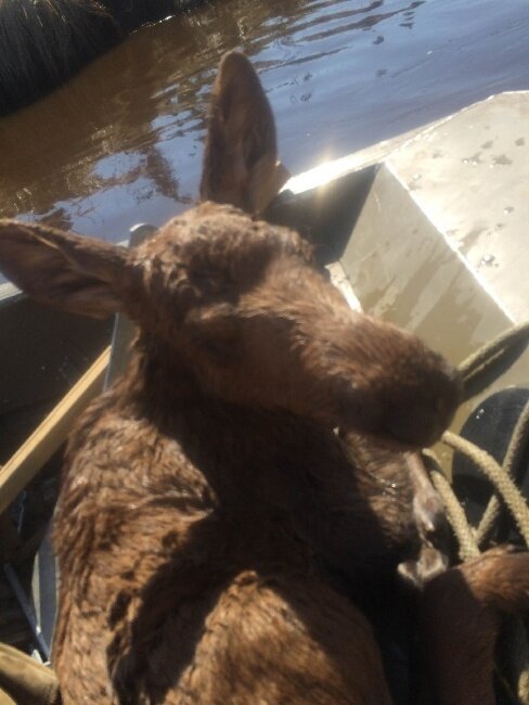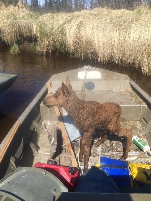 “She was tiny. The whole moose was the same size as the five-gallon gas can I have in my boat. She probably only weighed 25 pounds,” he said. “She walked over to me and started nuzzling me with her nose and I petted her a little bit.”