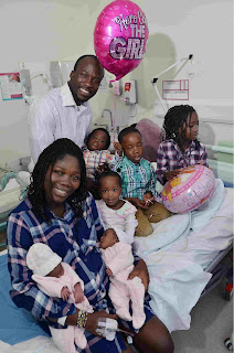 Abigail Adama, 30, gave birth at Bradford Royal Infirmary to the baby girls, who as yet have not been named. She and her husband Shaibu Abu-Adama, who moved to Bradford from Ghana in 2013, have a pair of four-year-olds and a pair of 18-month-old twins.