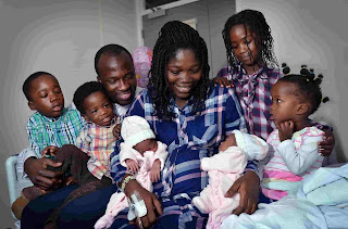 Abigail Adama, 30, gave birth at Bradford Royal Infirmary to the baby girls, who as yet have not been named. She and her husband Shaibu Abu-Adama, who moved to Bradford from Ghana in 2013, have a pair of four-year-olds and a pair of 18-month-old twins.