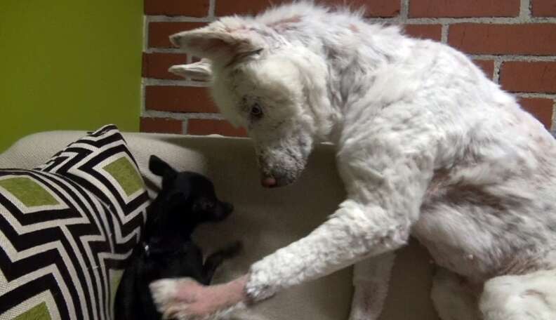 Después de estar aislados de los humanos y, probablemente, de otros perros durante el tiempo que estuvieron sin hogar, Miley y Frankie se entendieron.