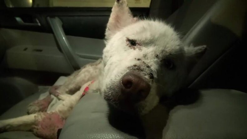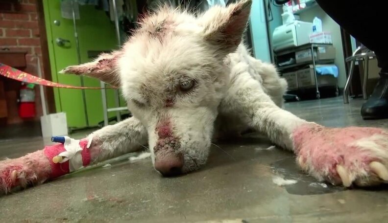 A continuación se muestra una foto de Miley en su primer día de curación. Cubierta de sarna y varias infecciones, le quedaba un largo camino por recorrer.Esperar en balde