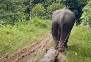 elephant pulling log