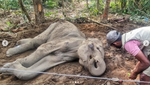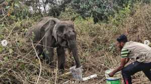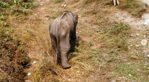 In the heart of the forest, a heartbreaking scene unfolded—a tiny female baby wild elephant, barely clinging to life, was discovered alone after being tragically separated from her herd.