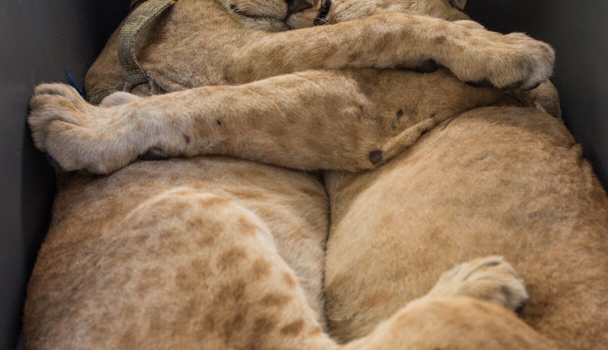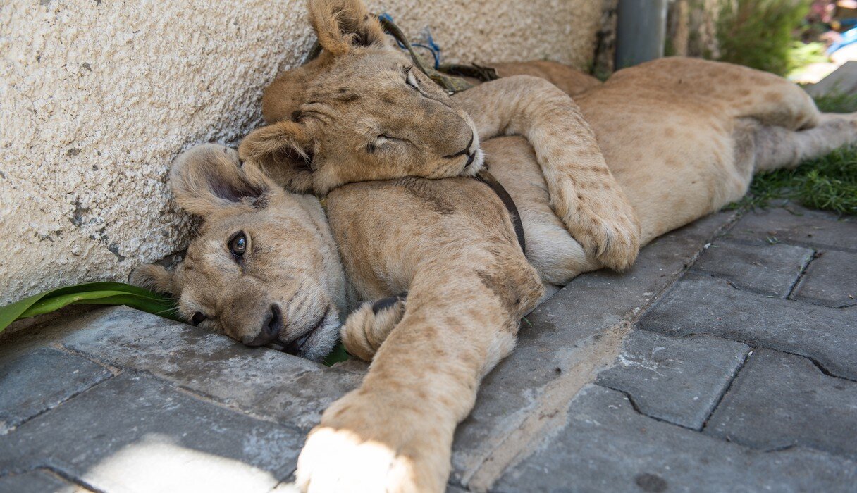 Lion Siblings Cling Together During Rescue From War-Torn Gaza