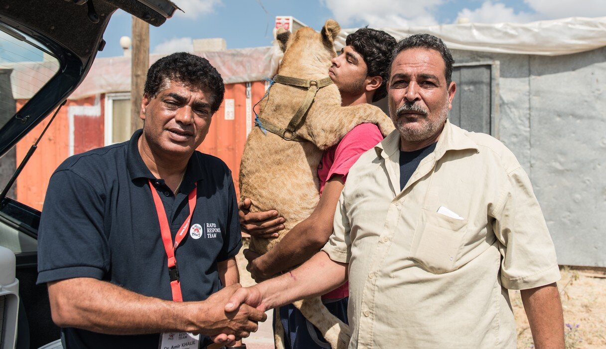 “Both cubs have already grown quite a bit bigger and stronger since their arrival in the refugee camp, and they now represent a significant danger for the inhabitants of the camp,” veterinarian Amir Khalil said in a statement last month.