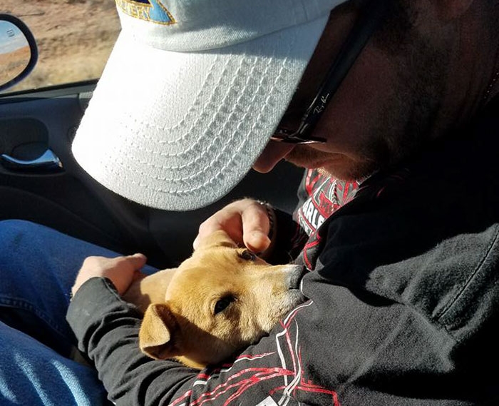 “So my brother and I are on our way down to Phoenix Arizona from Colorado, when in the middle of nowhere we see these two small puppies running on the side of the highway literally in the middle of nowhere. They probably haven’t eaten or drink water and who knows how many days. So it looks like me and my brother got two new dogs!” said Briggs LocHaven