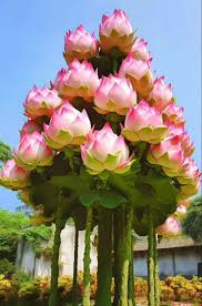 Enchanting Beauty of Majestic Lotus Thriving in Arid Soil, Each Tree Bursting with Myriad Multicolored Blossoms .nh