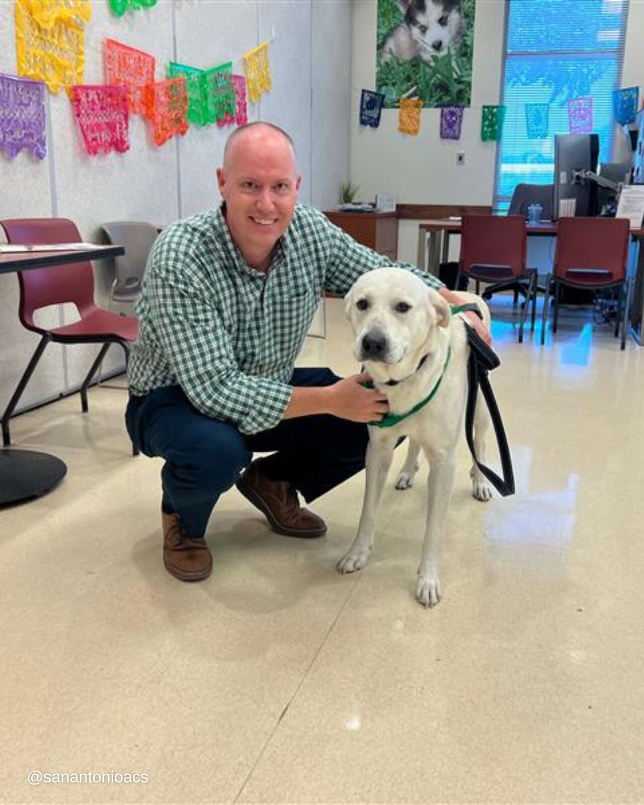 Mr. C. spent 30 minutes hanging out with Lucky at SAACS before officially deciding to take him home for good. A few days later, Lucky’s adoption was finalized, and the sweet pup was officially ready for his new life with a loving family.