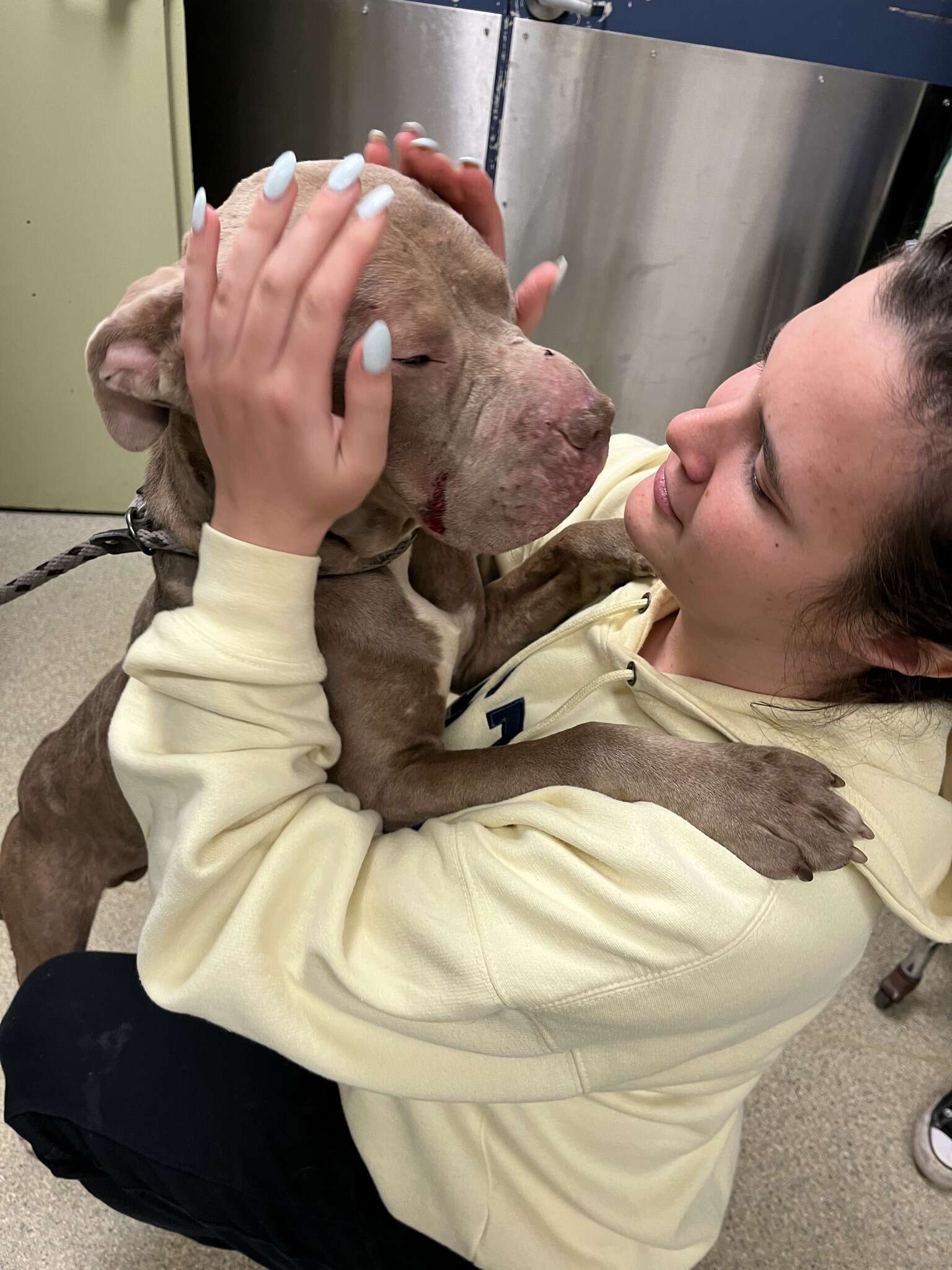 When Lochmann and her rescue partner, Natalie, got to the man’s home, they expected to find a scared and defensive dog in his yard. They walked up to the fence with a leash in hand, prepared for the dog to resist their rescue efforts, but, to their surprise, he was more than willing to go with them.