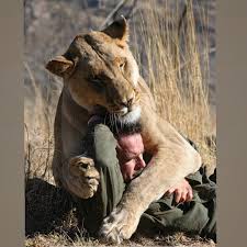 Its large, expressive eyes and affectionate gestures make it clear that this lion, while impressive in size, is a big softie at heart. Watching this gentle giant seek comfort and attention is a poignant reminder of the deep bond that can exist between humans and wildlife, showcasing a softer, more endearing side of one of nature’s most formidable creatures.