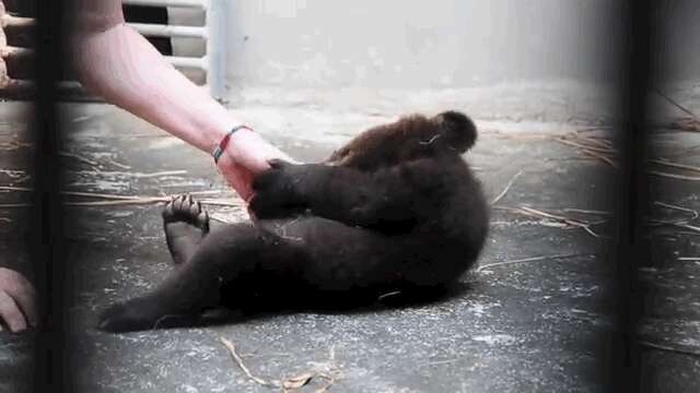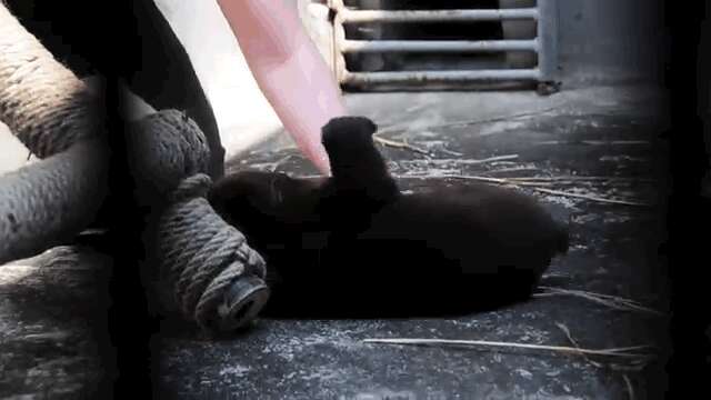 Smudge, a four-month-old moon bear cub born on a bear bile farm in Nanning, China was rescued after the farm’s owner turned his property over to an organization dedicated to rescuing bears.