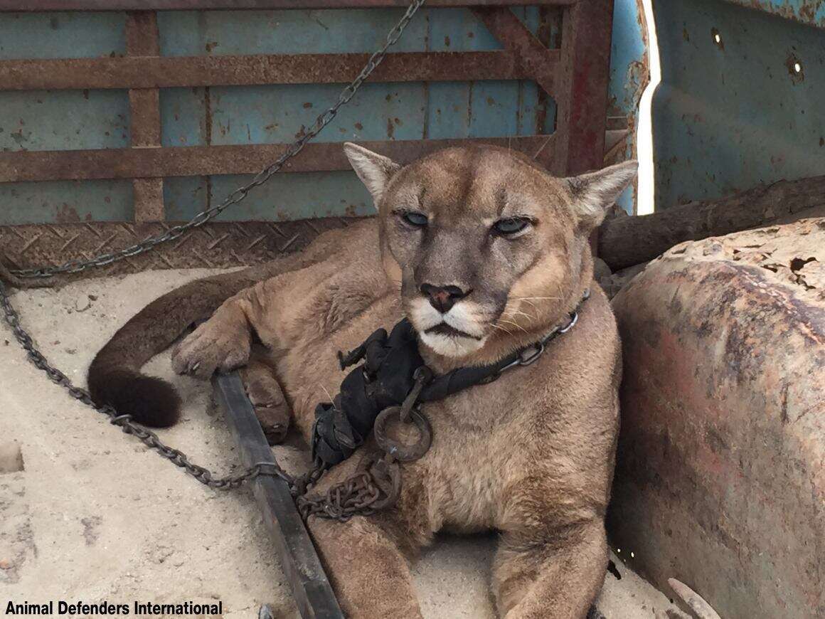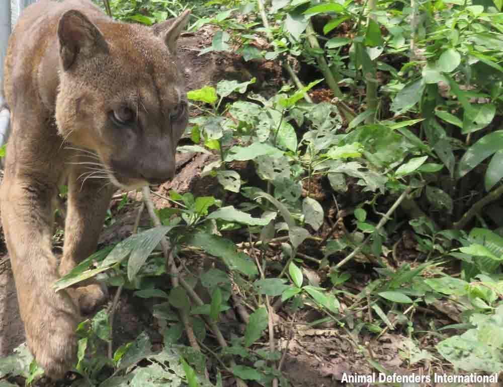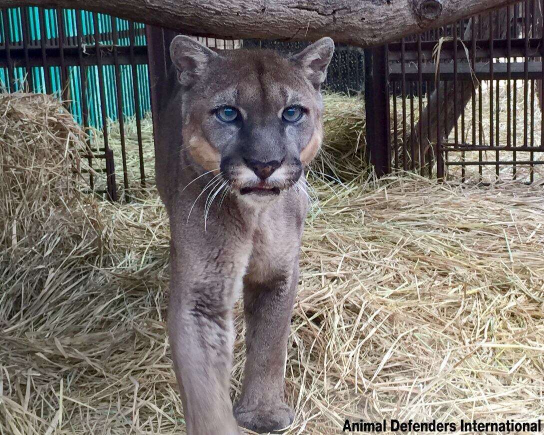 Rescued from an illegal Peruvian circus, Mufasa the mountain lion was likely sold in the illegal exotic pet trade as a youth.