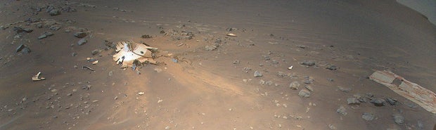 It’s an eerie scene: A desolate Martian landscape, completely empty, save for the wreckage of what appears to be an alien spacecraft. And it was all captured by a tiny helicopter flying overhead.
