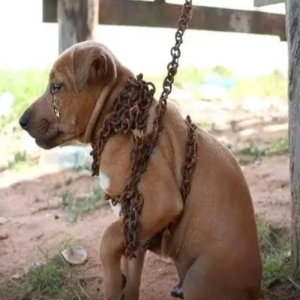 “Por favor, dame la libertad…” parecían gritar sus ojos, una súplica que atravesaba el aire, esperando que algún corazón humano aún fuera capaz de escucharla. No pedía riquezas, ni lujos, ni promesas imposibles: solo un gesto de amor, una mano que soltara esas cadenas y lo devolviera al mundo donde los perros corren libres bajo el cielo abierto.