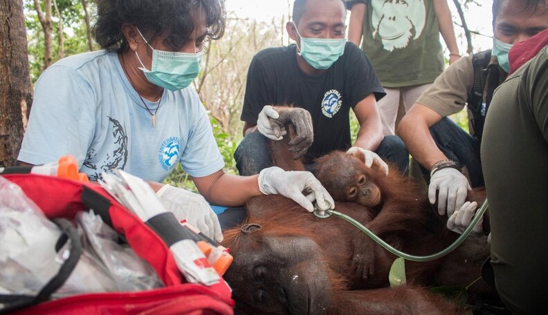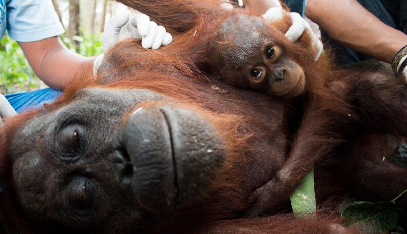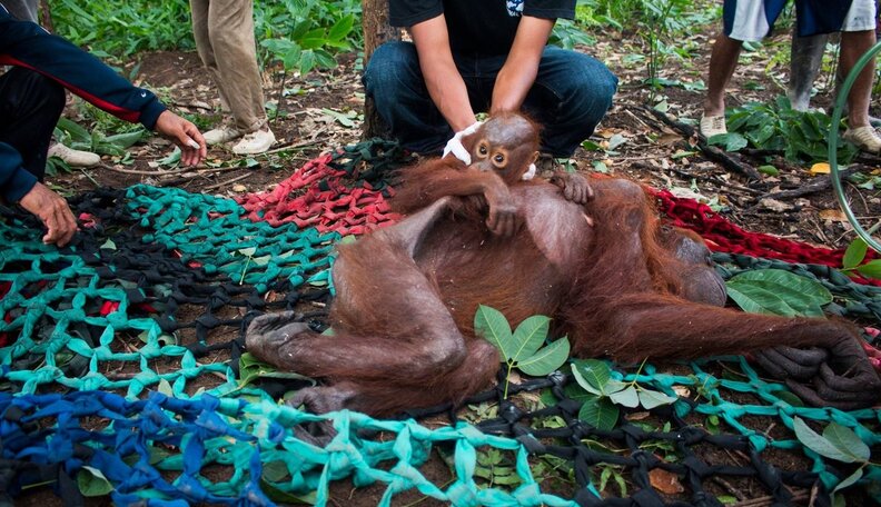 “It is amazing that, despite the fact that she was so skinny and weak, this mother was still determined to protect her baby,” Ayu Budi Handayani, a vet with IAR, said in a statement. “She had already undergone the trauma of losing all sources of food and shelter when the forest was destroyed and then she had to contend with being hit by an anaesthetic dart and caught in a net. The poor thing couldn’t know that we were there to help not harm her.”