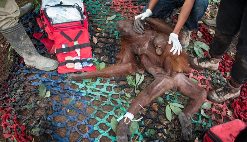 “This poor mother and her baby have been without food for many months because their habitat was destroyed by fire,” Karmele Llano Sanchez, program director for IAR, said in a statement. “It is heartbreaking to see wild orangutans in this extreme state of starvation … the horror of rescuing animals from the burning forest and seeing their habitats wiped out before our very eyes is almost impossible to bear.”