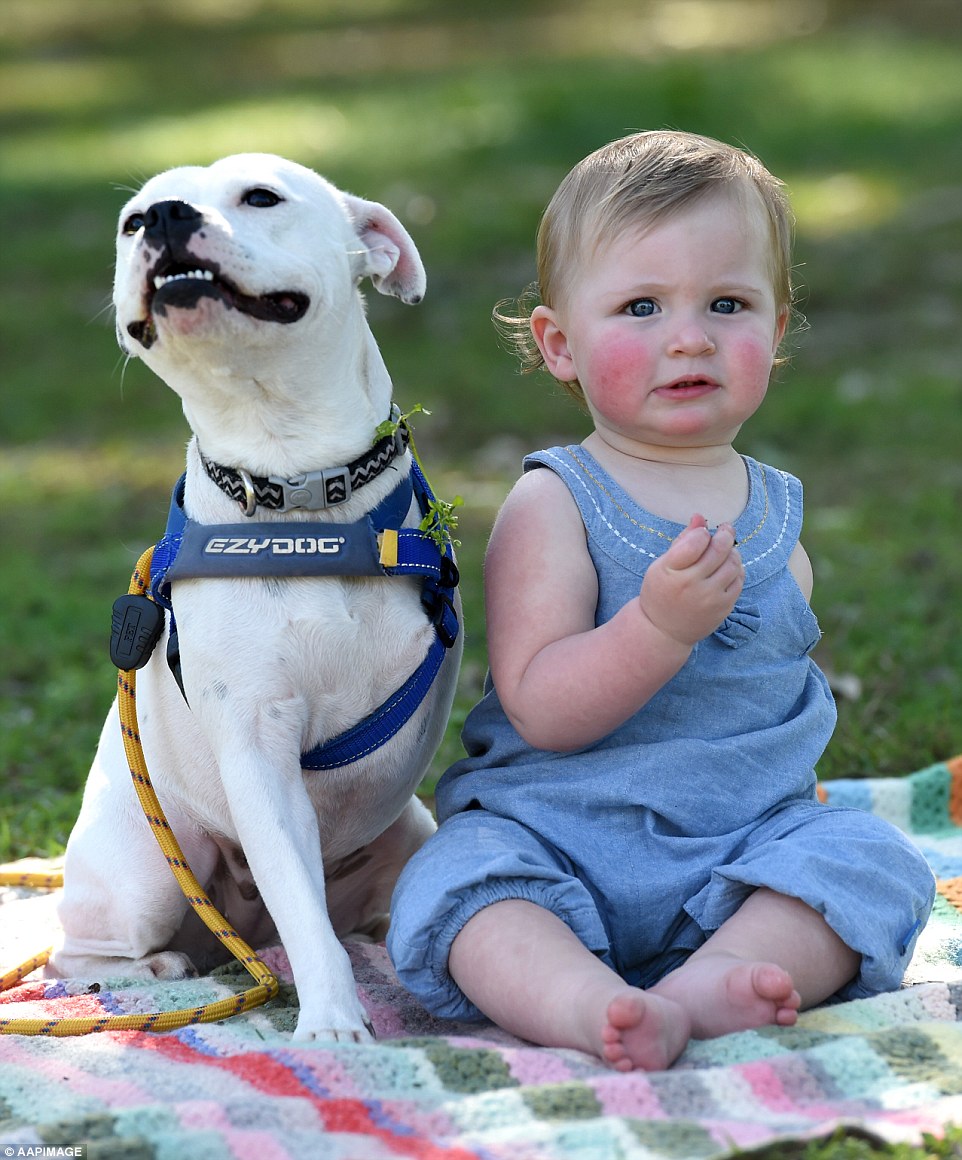 When her mother, Brooke Hodgson, saw the one-year-old Staffy Boston Terrier Cross named Snowy, she knew instantly the hound pound would be the perfect companion for her one-year-old daughter.