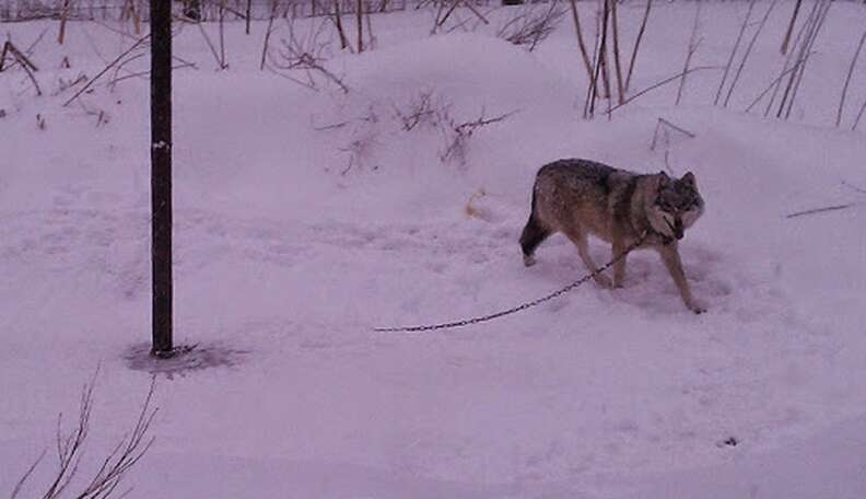 The brothers – Chance and Koda – were less than 2 years old, and they’d spent their entire lives tethered to posts at the roadside zoo. When the temperature dropped, the heavy chains froze into the animals’ fur. If the wolves walked in the opposite direction to the chain, the metal would rip fur from their necks.