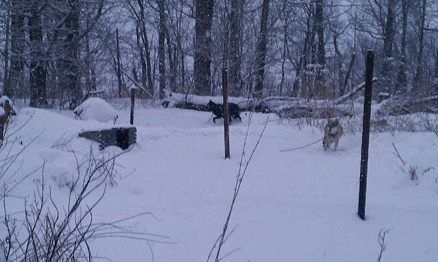 When O’Nell and her team arrived at Wolf Country USA, the first thing O’Nell noticed was the posts. “I saw posts sticking out of the frozen ground and wolf after wolf circling the posts like some sort of bizarre geometric design. I handed out ice cleats to everyone … knowing how packed the ice was, and how precarious trying to manage the terrain was going to be.”