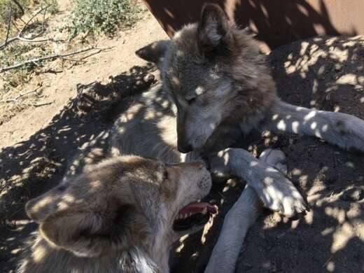 After spending years not being able to touch each other, Chance and Koda could finally interact. At their new home at Wolf Connection, they live in the same enclosure, where they can play and bump against each other. Chance, being the older brother, took on a more dominant role in their relationship, while Koda is more submissive.