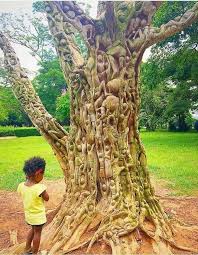 This is a sculpted tree from Aburi Botanical Gardens located in Aburi, Ghana. The tree is called the “Tree of Life” and has lived for more than 300 years.