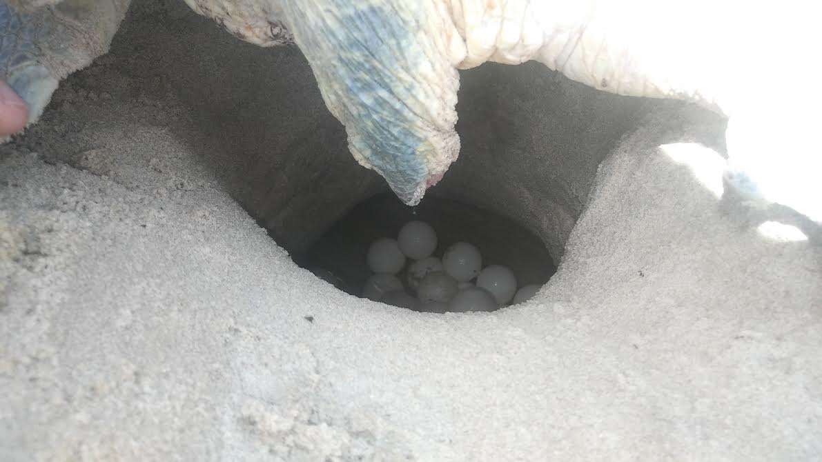 “She chose a rather poor spot to lay her eggs, where the sand was quite hard, and so I made the call to help,” he said. “As she tried to dig with the short stub [of her flipper], I reached in and dug for her.”