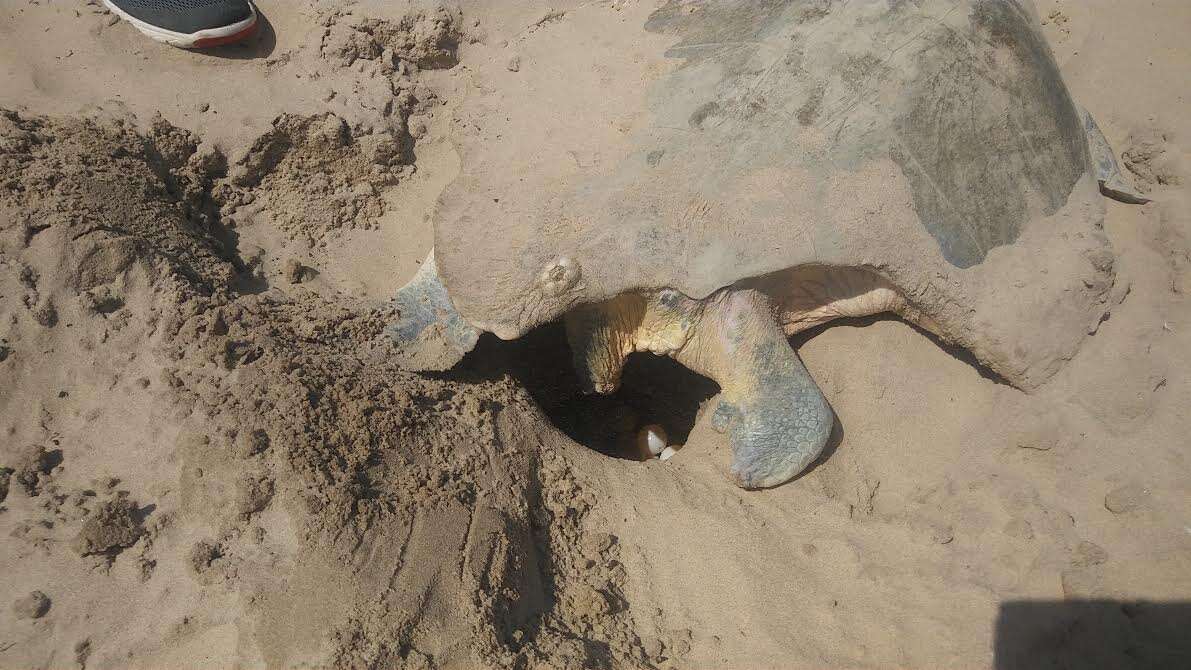 But nothing was going to stop this mama turtle from doing what she needed to do — this time, she laid 62 eggs.